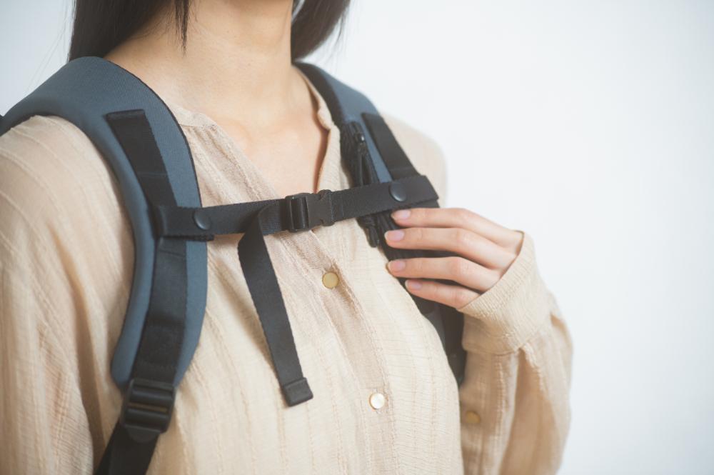 A: 背面に3D立体構造のパッドを採用し、重量を肩・背中・腰に均等に分散させる設計です。長時間背負っても疲れにくく、育児中の親御さんの身体的負担を軽減します。