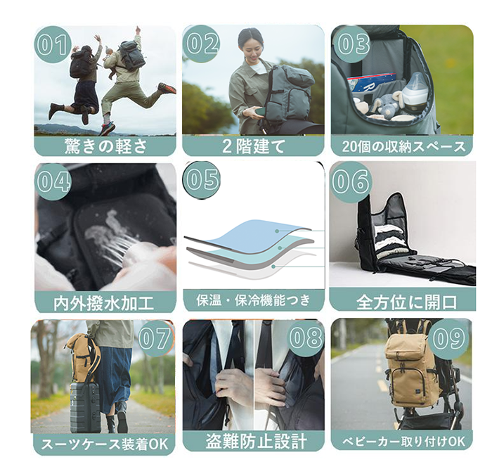 A: もちろんです。旅行、アウトドア、通勤、出張など、多様なシーンでご活用いただけます。育児が終わった後も、普段使いのバックパックとして長くお使いいただけるデザインです。