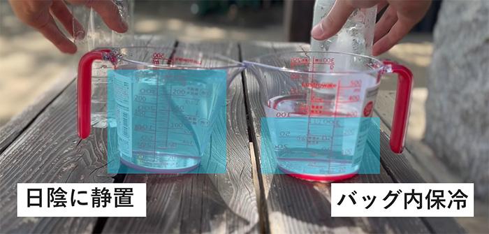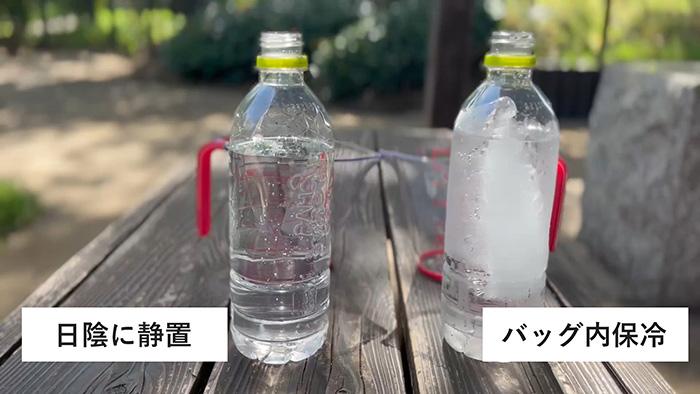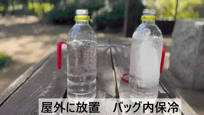 A: 内外に保温・保冷素材を採用しています。自社テストでは、気温27度・湿度約60%の環境下で、凍らせた500mlペットボトルを約4時間後も約3分の1が凍ったまま保持できました。暑い日の水も、寒い日のホットコーヒーも、お弁当も長時間お楽しみいただけます。