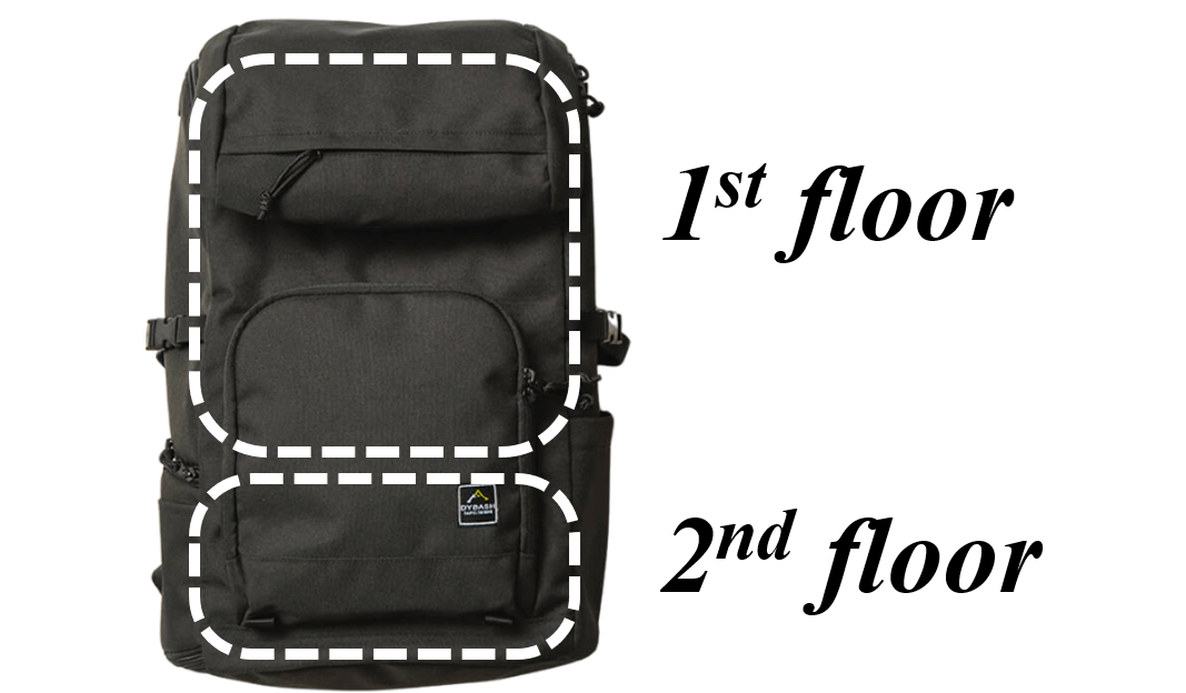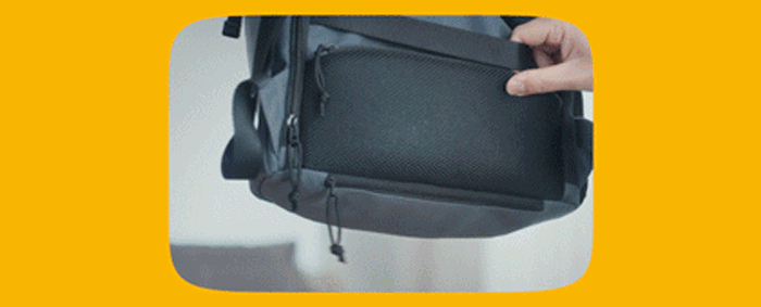 A: 底部を5cm拡張できる機能です。普段は全体をバッグに収納し余分なスペースを占有しませんが、荷物が増えた時は簡単に開いて容量を30Lから35Lに増やせます。汚れた靴なども、中身を汚さず収納できます。