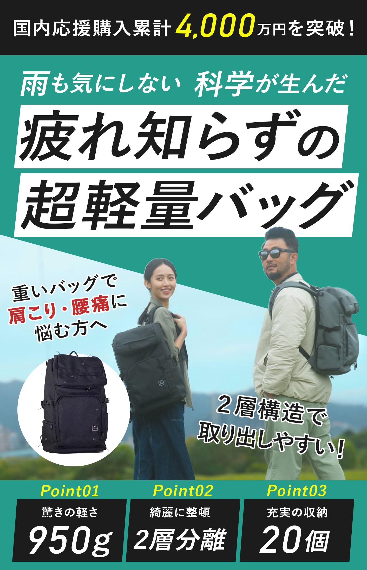 A: はい、同サイズの一般的なバッグが1.2〜1.5kgであるのに対し、950gのため軽量化を実現しています。長時間の使用でも肩や背中への負担を大幅に軽減します。