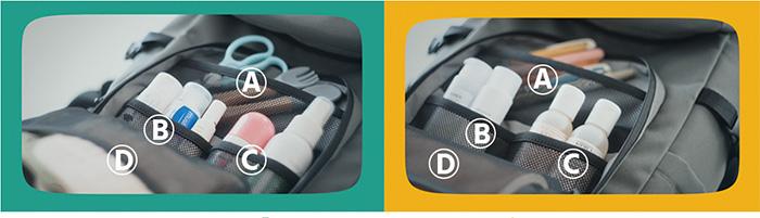 前面ポケット内:5か所(メイン×1,メッシュポケット×4)