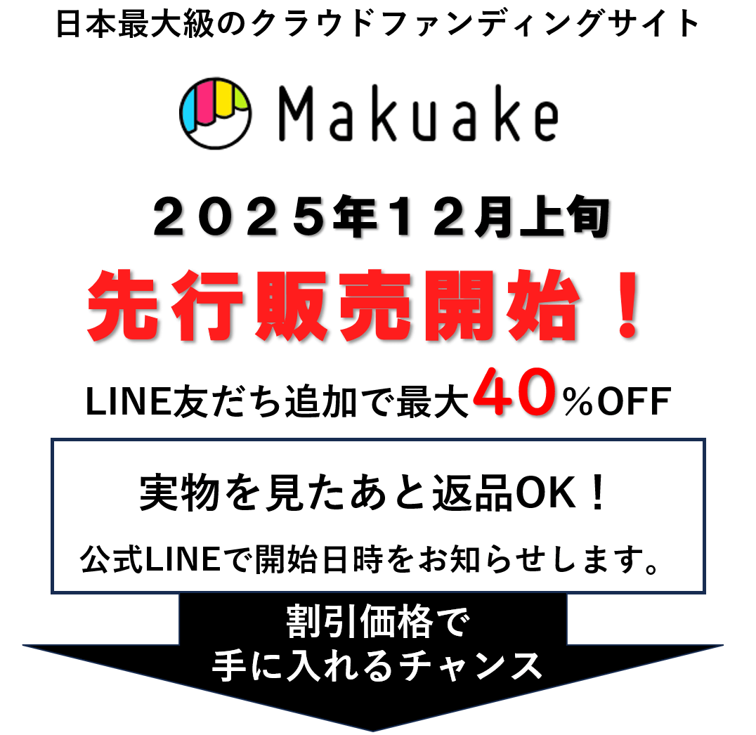 現在のところ、割引後価格で26,000円前後でのご提供予定となっております。ただもっとお安くできないか製造元と調整中のため、詳細は公式LINEにてお伝えします。